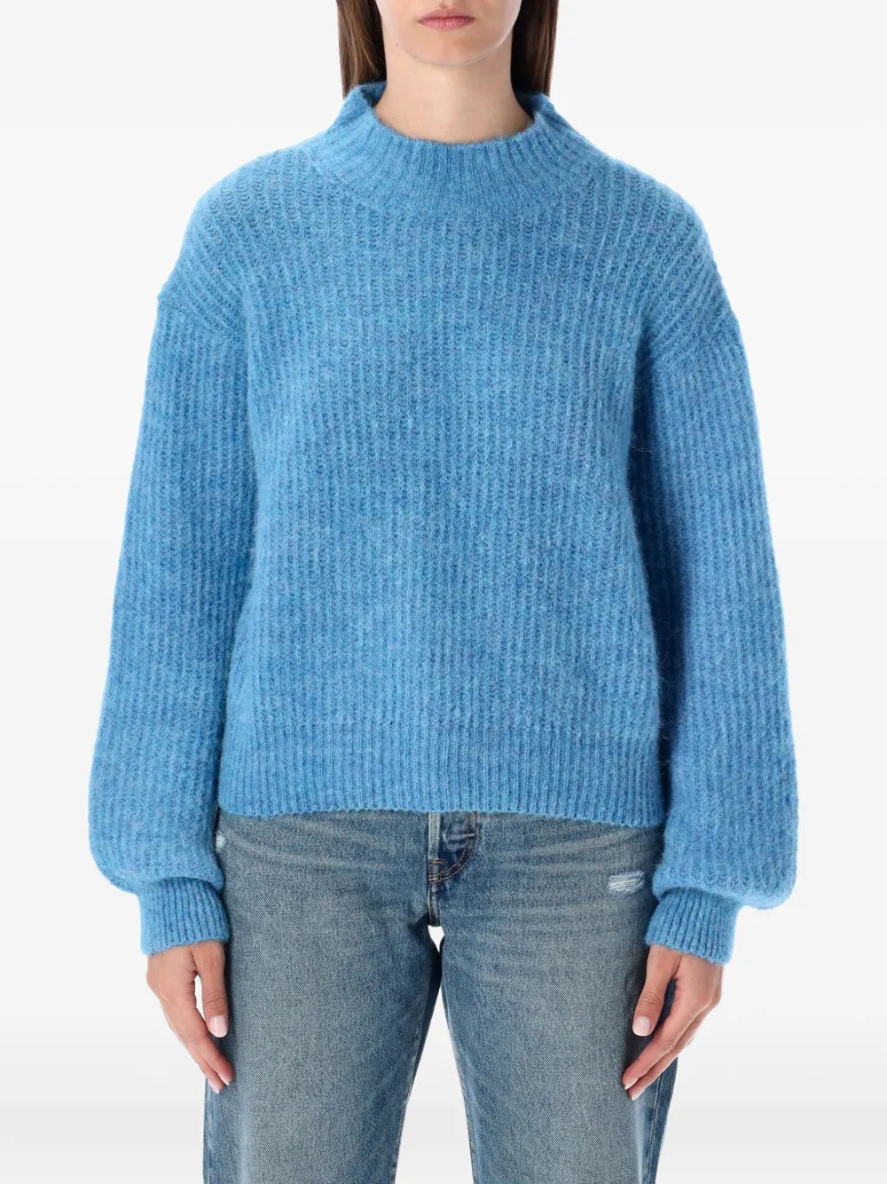A cozy mock-neck sweater made from an alpaca ribbed knit blend.