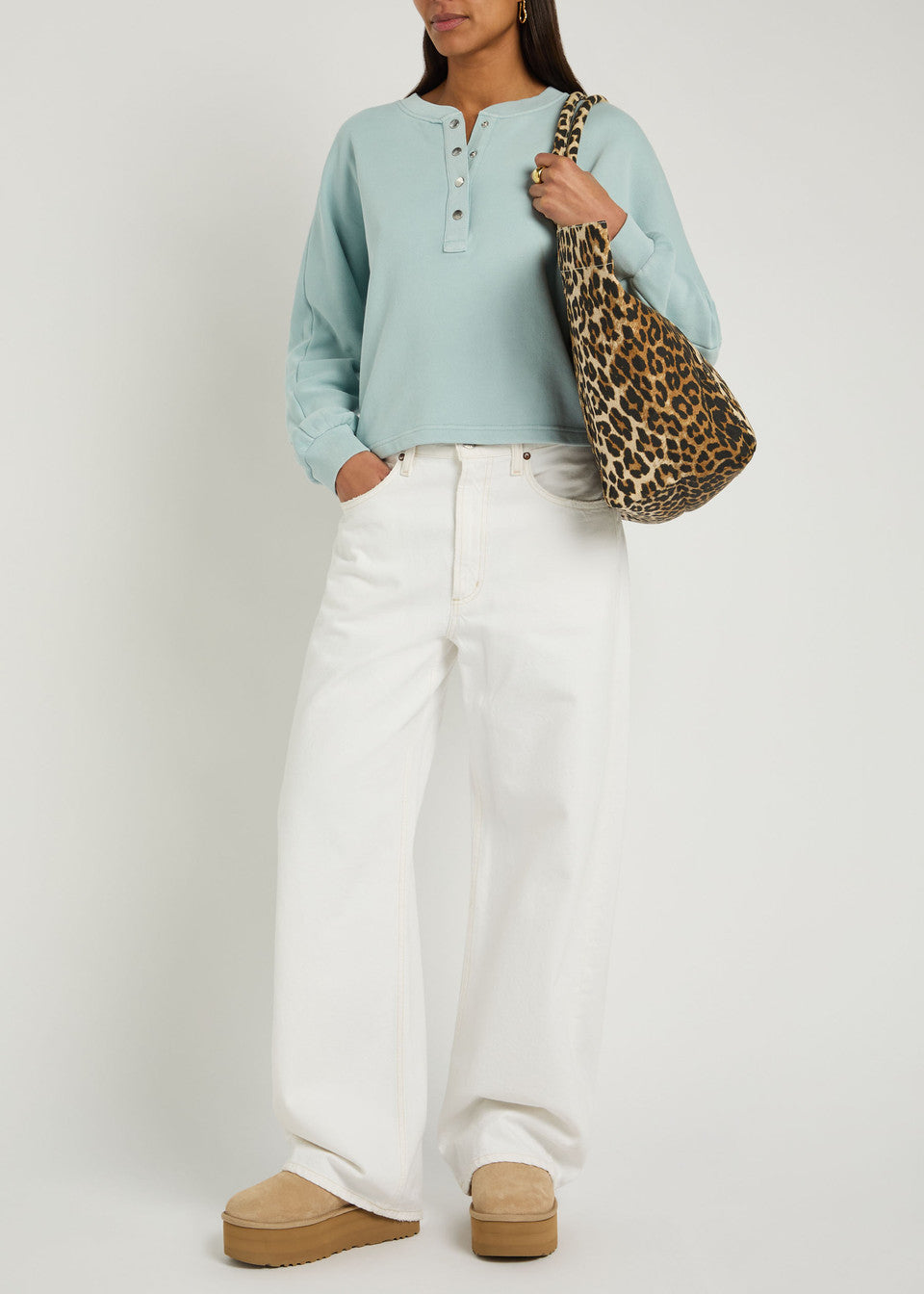 100% cotton. Popper fastening at front. Relaxed fit, round-neck, long sleeves, ribbed trims.