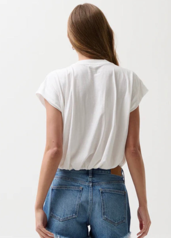 A playful take on a wardrobe essential, Millie features a bubble silhouette with a short, softly gathered hem for a relaxed feel. Made from 100% cotton, the bright white tee is a modern essential reimagined with understated volume.