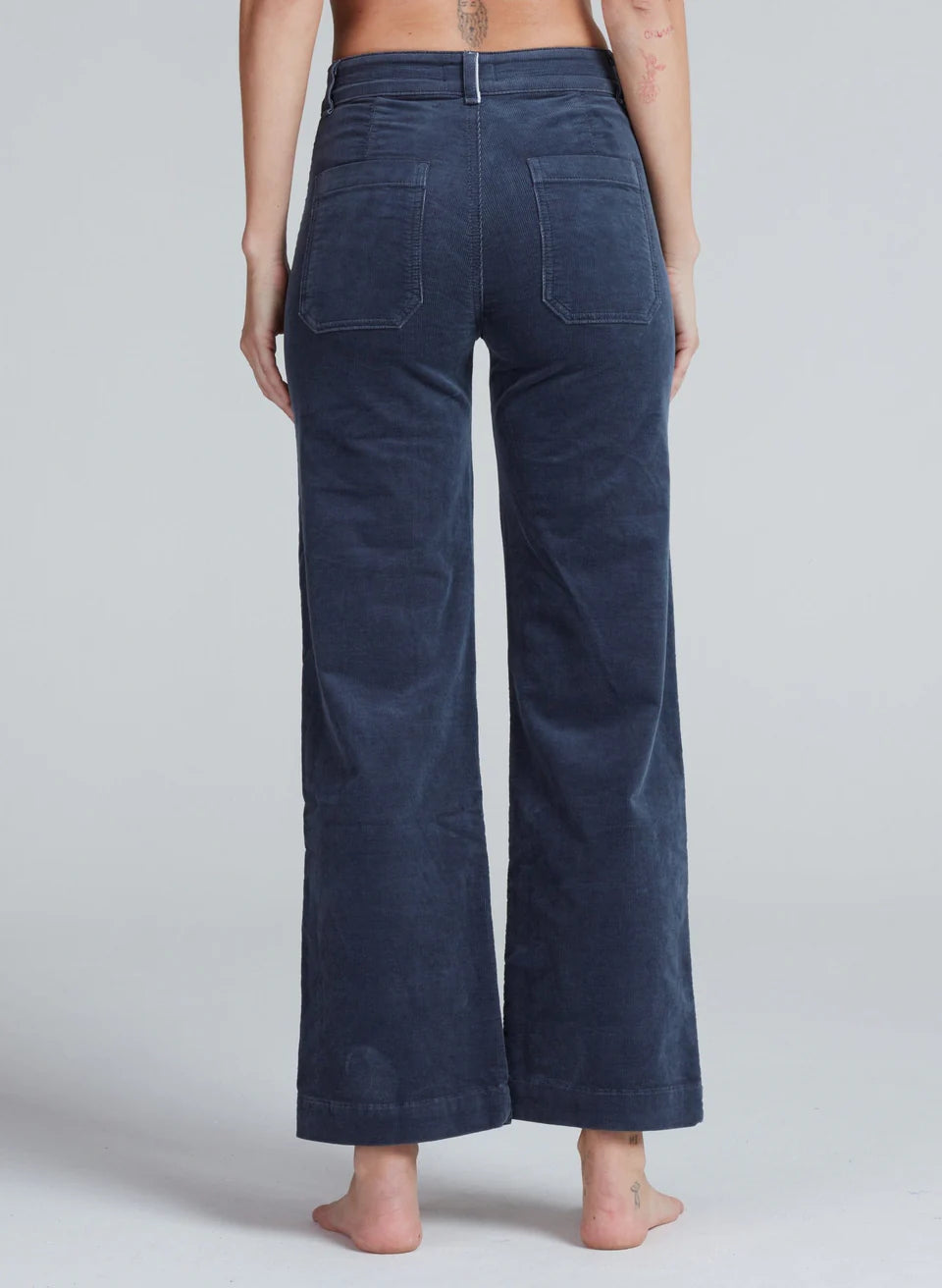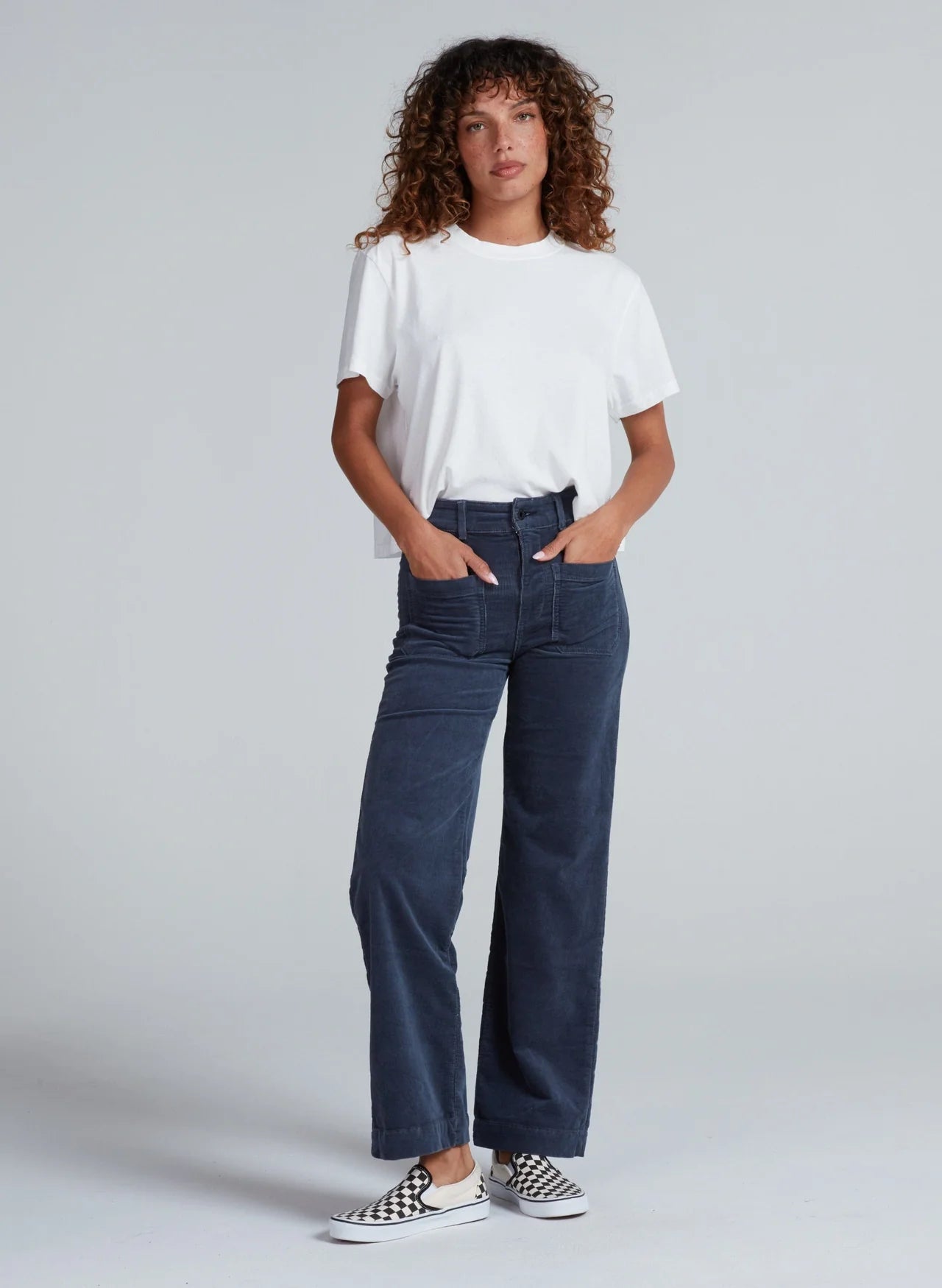 An everyday pant with vintage roots. The Sailor Pant is cut from soft stretch corduroy with a flattering high rise, wide leg, and clean front for a polished silhouette. Finished with front patch pockets and classic rear pockets, it's an easy choice for day-to-night wear with just the right a