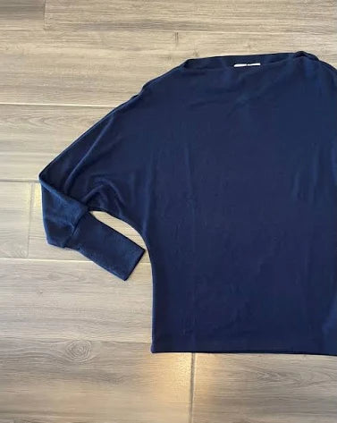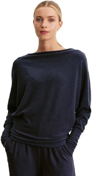 Made from extremely soft triblend knit, this top features a stylish boat neck and a draped silhouette. The dolman sleeves offer a relaxed feel, while the fitted ribbed cuffs provide a snug finish. Perfect for layering or wearing on its own.